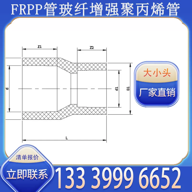 产品使用场景广泛,适用于化工行业轻度腐蚀液体管道异径过渡、食品加工行业清水管路口径衔接、市政工程辅助排水管变径输送、制药厂低浓度溶液管路口径调整等,能适配室内设备管路或室外浅埋管道安装。目前厂家支持批量批发,价格具备优势,有意采购 FRPP 大小头的客户,可直接拨打联系方式 13339996652 咨询详情。