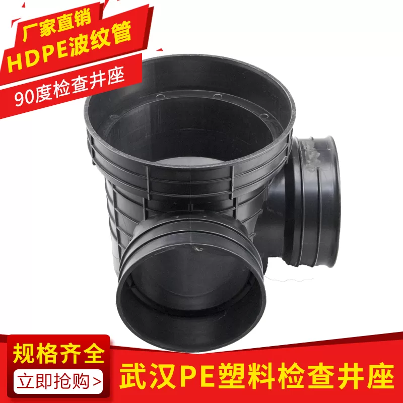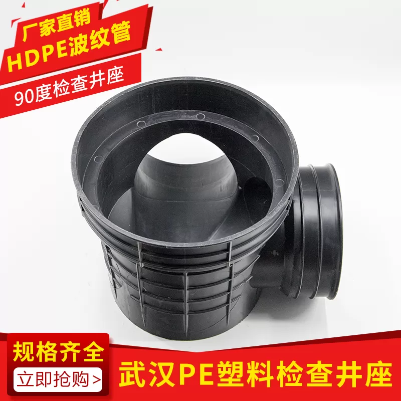 检查井 90 度井座又称 90 度检查井座,因连接管道时呈 90 度转角结构得名,采用耐用材料制成,具备良好的密封性与结构稳定性,可实现管道垂直转向处的稳定连接与检修功能。专业厂家供应,支持批量批发,满足不同工程采购需求,咨询可联系 13339996652。