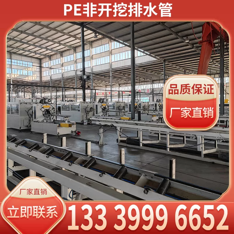 Paip saliran bukan penggalian HDPE, juga dikenali sebagai paip saliran bukan penggalian polietilena berketumpatan tinggi, ialah paip HDPE yang sesuai untuk pembinaan bukan penggalian. Dinding dalam licin, dinding luar mempunyai kedua-dua kekuatan dan fleksibiliti. Ia diperbuat daripada bahan yang sesuai dan boleh dipasang dalam persekitaran yang kurang penggalian atau tiada penggalian. Pengilang membekalkan terus, menyokong pemborongan, dan menghubungi 13339996652. Spesifikasi dan model adalah pelbagai. Diameter luar biasa meliputi 200mm hingga 2000mm, panjang satu akar lebih daripada 6 meter. Ketebalan dinding dilaraskan secara berperingkat dengan diameter paip. Fleksibiliti paip disesuaikan dengan keperluan transit bawah tanah. Antaramuka menggunakan reka bentuk dok atau palam panas, sesuai untuk daya tarikan pembinaan tanpa penggalian, akses atas dan proses lain, dan mudah dipasang. Senario penggunaan yang luas sesuai untuk meletakkan saluran paip saliran perbandaran melalui jalan raya dan sungai, pemulihan dan penggantian rangkaian paip lama, pengubahsuaian saluran paip bawah tanah di kawasan bandar, dan pemasangan saluran paip utama pengairan tanah ladang yang tidak digali, dsb., yang boleh mengurangkan kerosakan kepada lalu lintas permukaan dan tumbuh-tumbuhan, sesuai untuk rupa bumi yang kompleks dan persekitaran bawah tanah, memastikan sistem saliran lancar dan kos penyelenggaraan yang rendah.