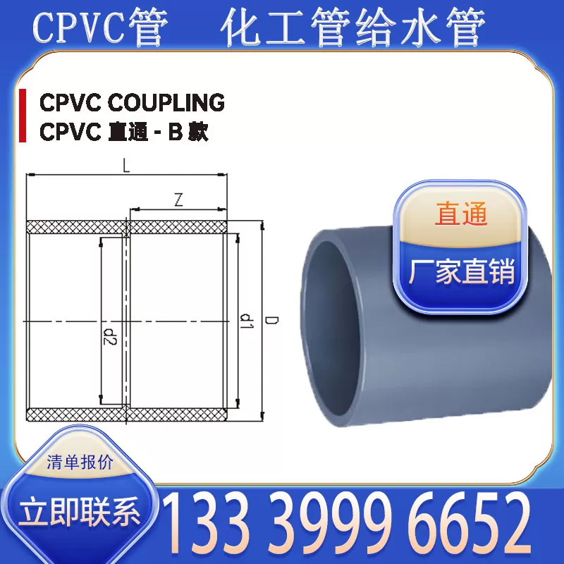 产品使用场景广泛,适用于化工行业低浓度酸碱溶液管道直线衔接、制药行业腐蚀性原料管路延伸、电镀行业废液排放管道对接、电子行业高纯试剂管路拼接等,适配室内设备管路或室外防腐管道安装。目前厂家支持批量批发,价格具备优势,有意采购 CPVC 直通的客户,可直接拨打联系方式 13339996652 咨询详情。