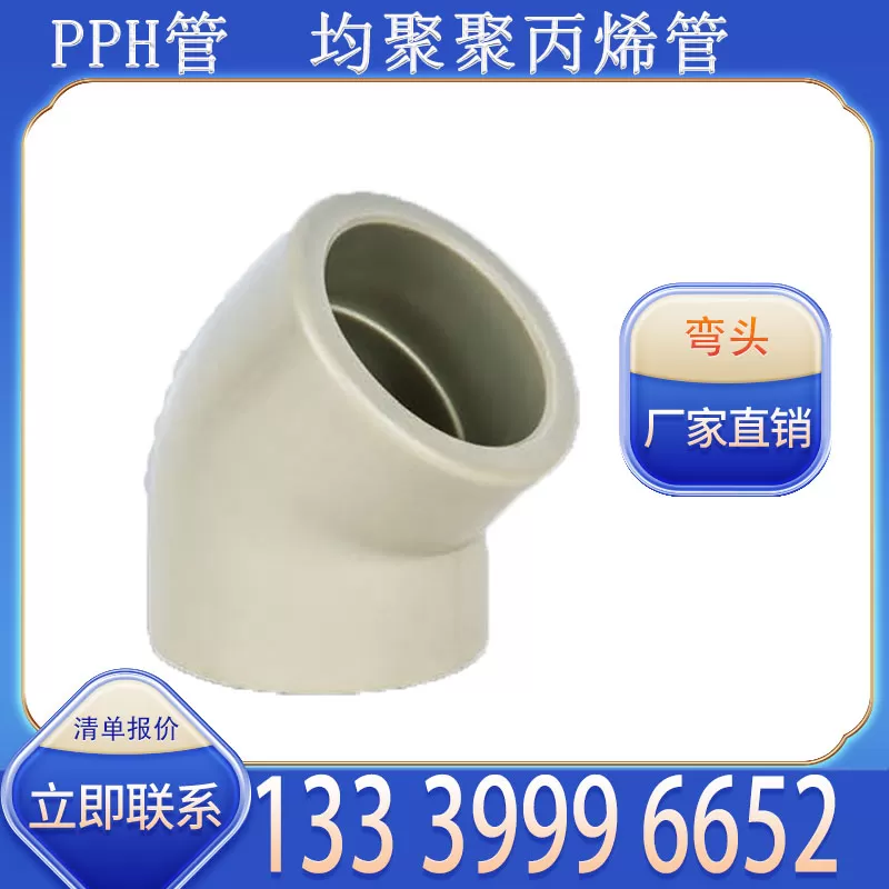 产品使用场景广泛,适用于家庭住宅冷热水管转向、商业综合体供水系统衔接、食品加工行业清水管路拐角、化工行业低浓度溶液管道转向等,能适配室内明装、暗敷或室外浅埋安装。目前厂家支持批量批发,价格具备优势,有意采购 PPH 管弯头的客户,可直接拨打联系方式 13339996652 咨询详情。
