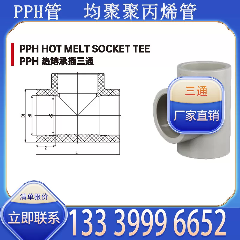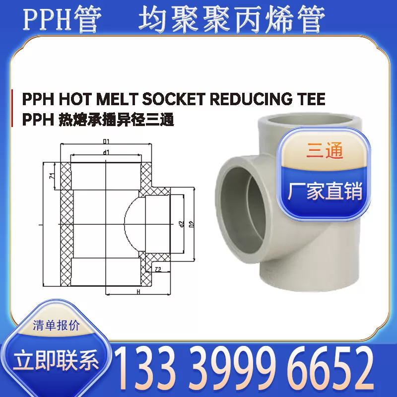 产品使用场景广泛,适用于家庭住宅冷热水管分支、商业综合体供水系统分流、食品加工行业清水管路汇流、化工行业低浓度溶液管道分支等,适配室内明装、暗敷或室外浅埋安装。目前厂家支持批量批发,价格具备优势,有意采购 PPH 三通的客户,可拨打联系方式 13339996652 咨询详情。