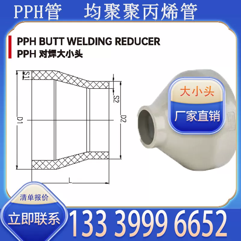 产品使用场景广泛,适用于家庭住宅冷热水管变径、商业综合体供水系统口径衔接、食品加工行业清水管路过渡、化工行业低浓度溶液管路口径调整等,适配室内明装、暗敷或室外浅埋安装。目前厂家支持批量批发,价格具备优势,有意采购 PPH 管大小头的客户,可直接拨打联系方式 13339996652 咨询详情。