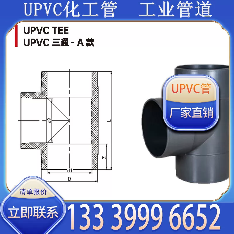 产品使用场景广泛,适用于化工行业轻度腐蚀溶液管道分支、制药行业低浓度原料管路汇流、电镀行业预处理废液排放管道分流、环保行业污水治理管路分支等,适配室内设备管路或室外普通防腐管道安装。目前厂家支持批量批发,价格具备优势,有意采购 UPVC 化工管三通的客户,可直接拨打联系方式 13339996652 咨询详情。