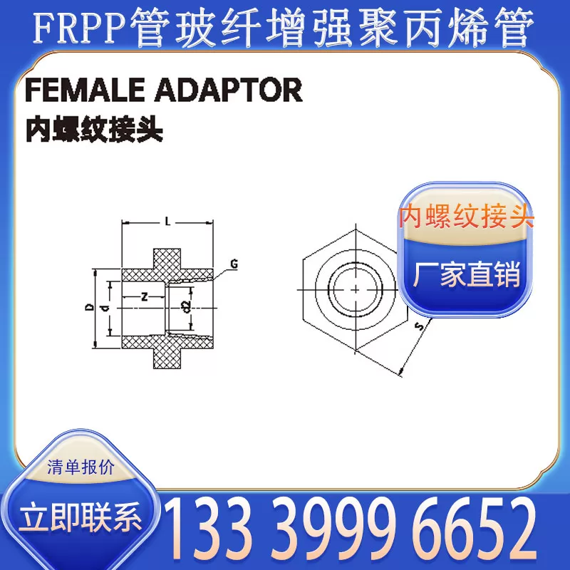 本廠家供應的 FRPP 內螺紋接頭,以玻璃纖維增強聚丙烯(FRPP)爲原料製成,內壁帶螺紋結構,適配 FRPP 管道與螺紋管件銜接,兼具韌性與耐腐性,支持批發,詳情可聯繫 13339996652。...